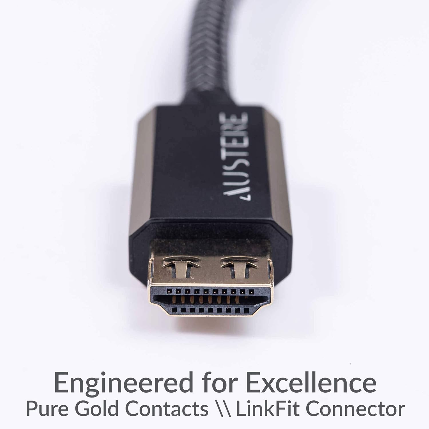 Austere 7S-8KHD2 HDMI Cable is engineered for uncompromising performance, delivering full HDMI 2.1 compliance with 48Gbps bandwidth to support 8K60, 4K120, and up to 10K resolution. Silver-plated oxygen-free copper conductors and pure gold contacts ensure optimal signal fidelity and minimal interference. The WovenArmor jacket reinforced with Kevlar provides enhanced durability and flexibility for tight installations and high-traffic environments. LinkFit locking connectors offer a secure, vibration-resistant connection. Supports advanced features including Dynamic HDR, eARC, VRR, ALLM, QFT, and QMS. Ideal for next-gen gaming consoles, 8K displays, and high-end home theater systems. Backed by Austere’s lifetime guarantee.