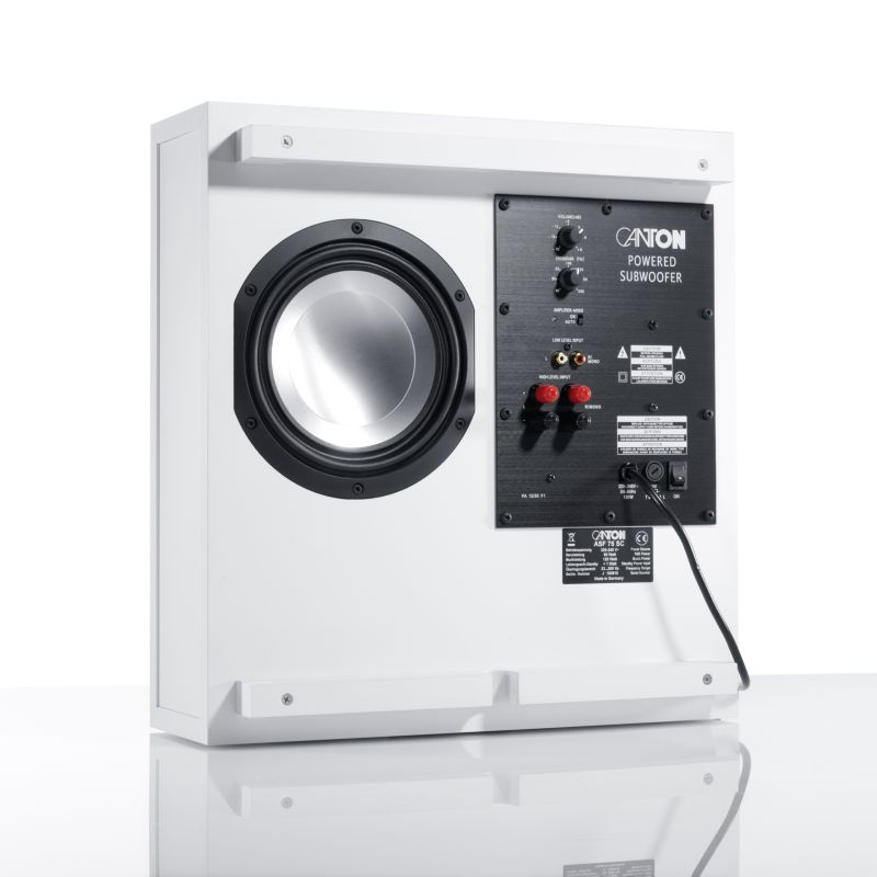 The Canton ASF 75 SC in white is a compact, flat active subwoofer engineered for discreet integration into modern living spaces while delivering precise and powerful low-frequency performance. Its slim bass reflex cabinet allows installation inside racks, behind or beneath furniture, or directly on the wall, making it an ideal solution for rooms where space efficiency and clean aesthetics are essential.
