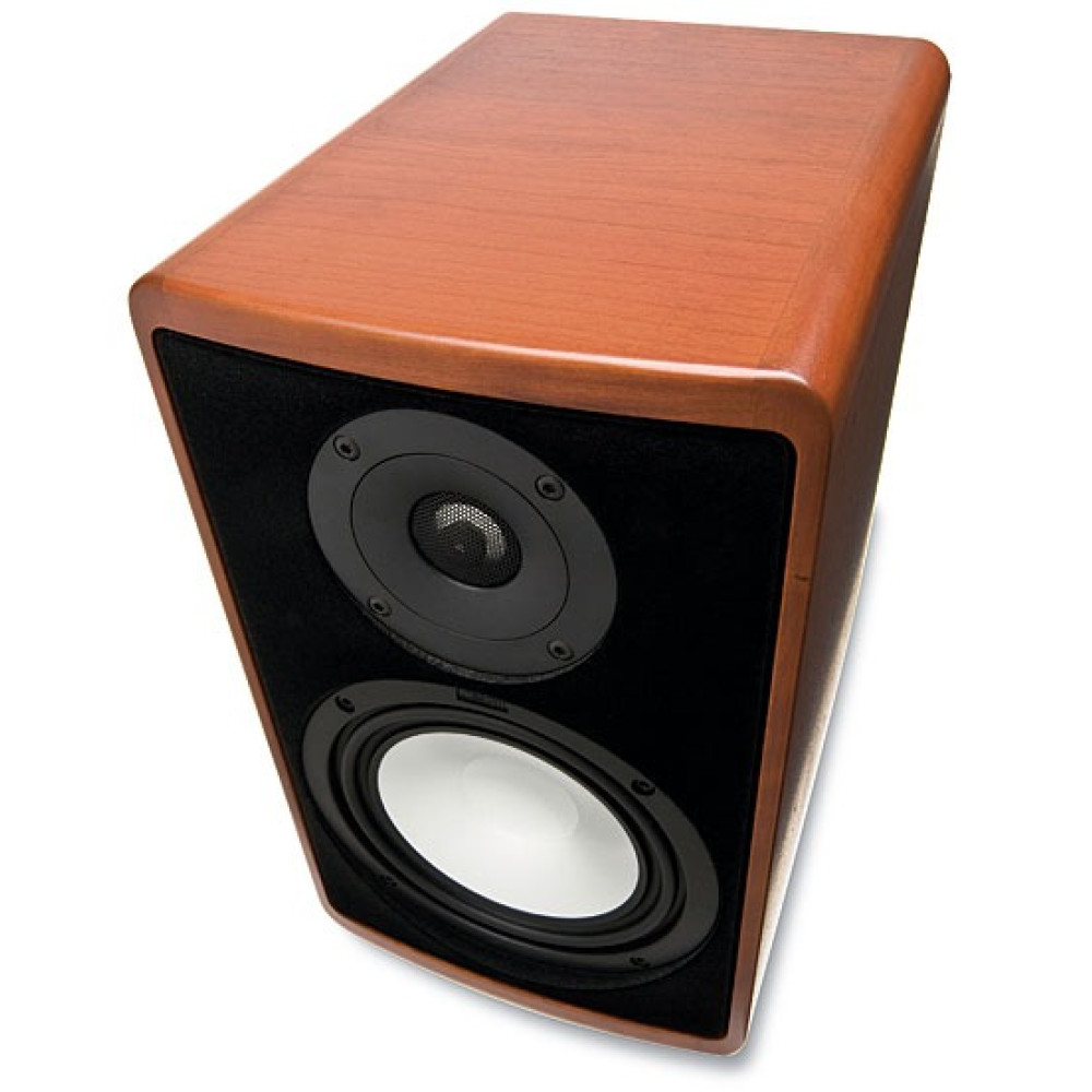 Ergo 620 compact speakers in Cherry finish combine classic hi-fi design with refined acoustic engineering, delivering balanced sound performance, powerful bass, and elegant real wood craftsmanship in a compact enclosure.