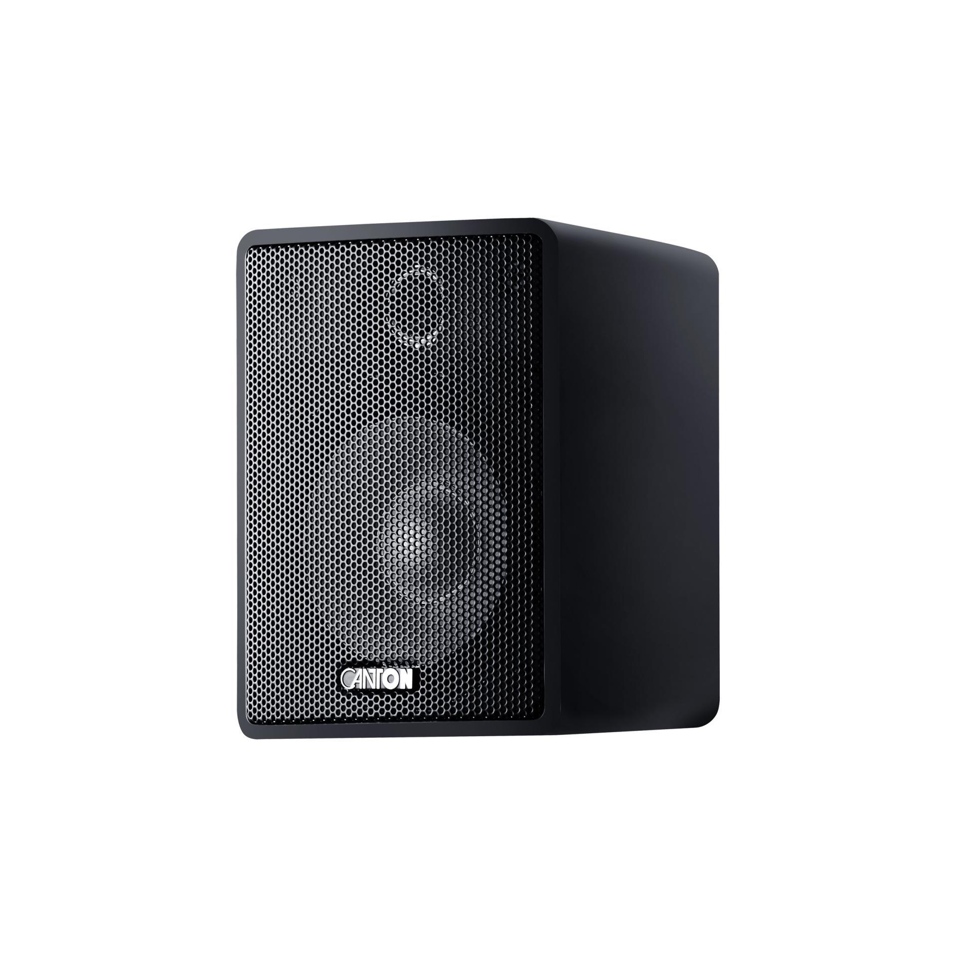 Canton Plus MX.3 in black is an ultra-compact satellite speaker delivering detailed mids and highs, ideal for discreet 5.1 home theater setups, paired with a subwoofer for full-range Hi-Fi performance.