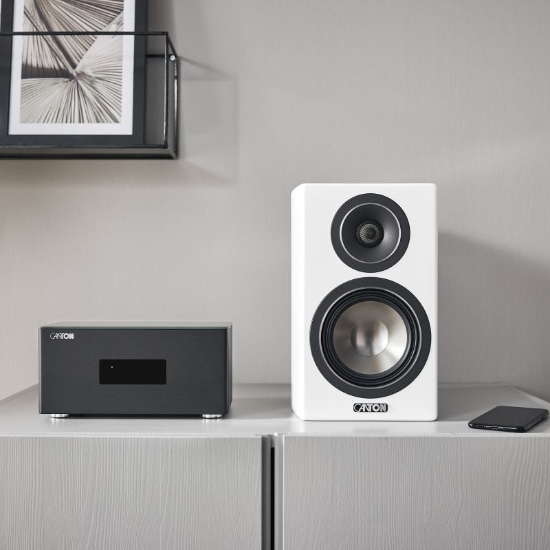The amplifier supports the connection of up to six wired passive speakers, including front channels, a center speaker, and a subwoofer, while also allowing the integration of up to eight wireless speakers from the Canton Smart series. This flexible architecture makes it possible to create everything from a high-quality stereo setup to an extensive 7.1.4 Dolby Atmos system. High-resolution audio transmission up to 24 bit / 96 kHz ensures detailed and dynamic sound reproduction across all configurations.
