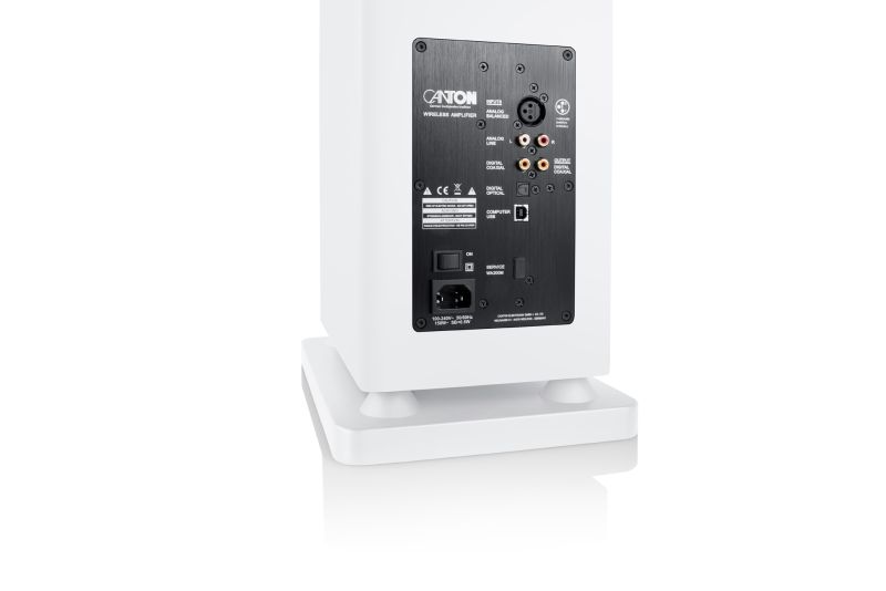 Connectivity options are extensive, including analog XLR and RCA inputs, optical and coaxial digital connections, USB-XMOS for high-quality computer audio, and Bluetooth streaming with aptX. The Smart Townus 8 can be used as a high-performance stereo system or expanded wirelessly with other Canton Smart speakers for flexible home cinema and multiroom configurations.
