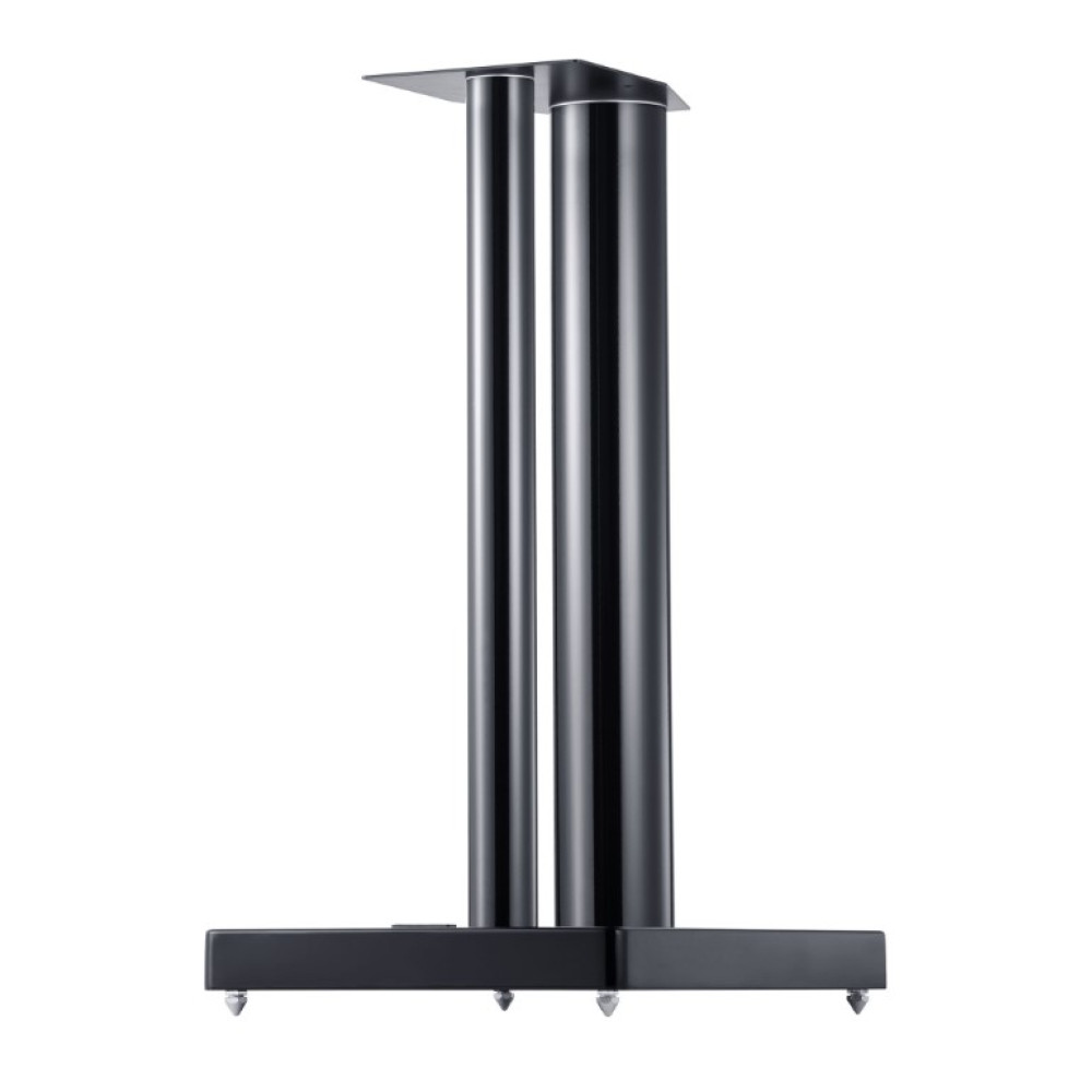 LS 860 speaker stand in Black High Gloss, designed for Vento and Reference series, providing stable support, precise speaker alignment, and elegant design with steel platform and cast aluminum base.