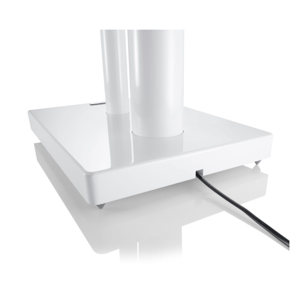 LS 860 speaker stand in White High Gloss, crafted for Vento and Reference series, offering stable support, precise speaker alignment, and elegant design with steel platform and cast aluminum base.