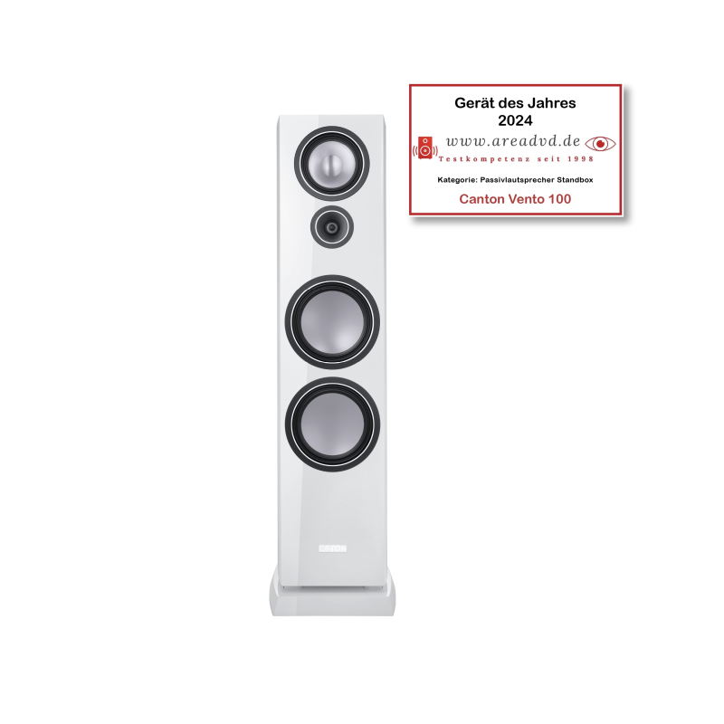 The Canton Vento 100 floorstanding loudspeaker in white high-gloss represents the flagship of the Vento series, combining advanced acoustic engineering with a refined and contemporary visual identity. Designed for audiophile listening, it delivers authoritative sound performance while maintaining a clean and elegant presence that integrates seamlessly into modern interiors.