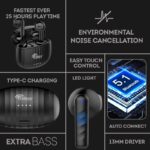Cellecor BroPods CB05 are waterproof true wireless earbuds designed for immersive sound and reliable performance. Equipped with Bluetooth 5.1V, 13mm dynamic drivers, and Environmental Noise Cancellation (ENC), they deliver deep bass and clear audio. With up to 25 hours of total playtime via the charging case, IPX5 water resistance, Type-C fast charging, and Insta Wake N’ Pair auto pairing, they’re ideal for workouts, travel, and daily use.