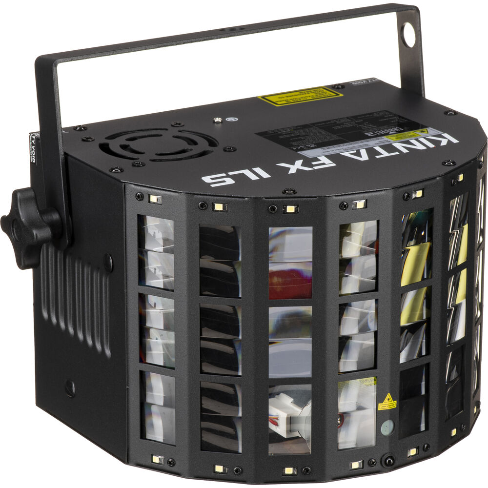 The Chauvet DJ KINTAFX ILS is a multi-effect LED lighting fixture designed for dynamic stage shows, DJ performances, and event lighting. With built-in ILS (Integrated Lighting System) synchronization, it can wirelessly link with other ILS-enabled fixtures for coordinated, immersive lighting experiences.