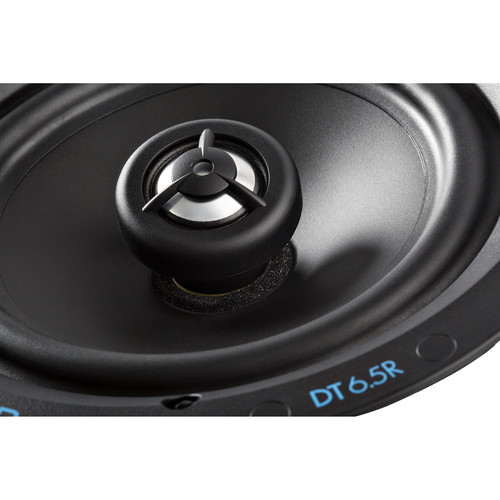 Definitive Technology DT 6.5R is a compact in-ceiling 2-way speaker with a 6.5-inch mid-woofer and pivoting aluminum tweeter, delivering high-fidelity audio for multi-room or home theater installations.