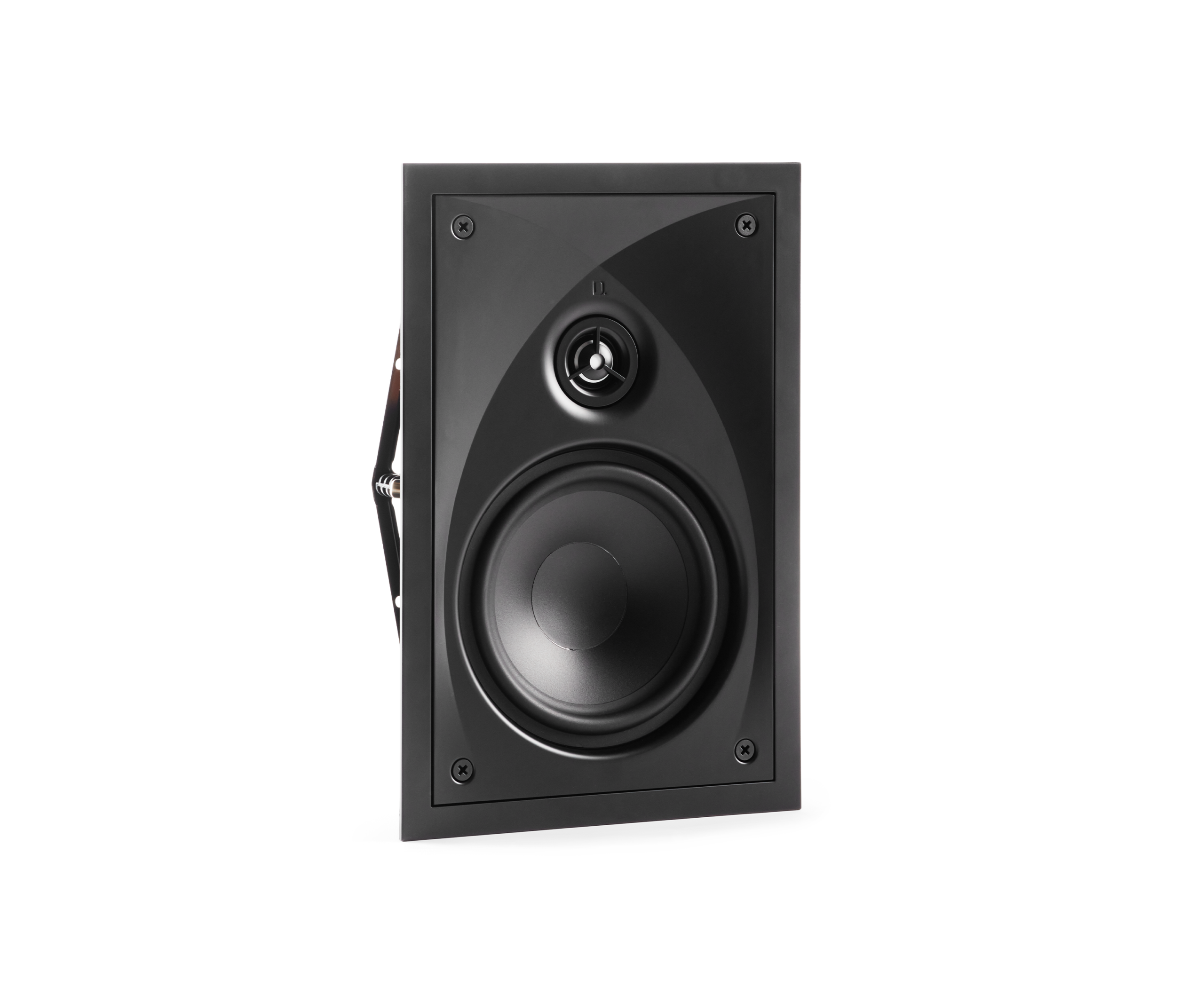Dymension CI™ in-wall speakers are engineered to provide consistent, high-fidelity audio for both home and commercial applications. Equipped with a 6.5-inch mineral-filled poly midrange/woofer and a 1-inch pivoting aluminum oxide dome tweeter, these speakers produce rich lows, detailed midrange, and precise high frequencies. The innovative two-piece toolless installation system, including pivoting dog arms, allows fast and effortless mounting without any tools, while pre-construction brackets simplify installation during new builds. Pivoting tweeters enable customizable coverage, allowing sound to be directed exactly where it is needed for optimal listening experiences. The flush, border-free, paintable grille ensures a discreet and seamless integration into walls or ceilings. With IP55-rated construction, these speakers are protected against dust and low-pressure water streams, making them suitable for high-humidity indoor areas or outdoor spaces. Timbre-matching allows seamless integration with other Dymension, Dymension CI, Mythos speakers, and Descend Series subwoofers, providing a cohesive and immersive home theater or commercial sound system. Recommended amplifier power ranges from 20 to 120 watts, with a nominal impedance of 6Ω and sensitivity of 86dB (2.83V/1m). Included accessories such as the grille, literature pack, and hole cutting guide ensure an easy and professional installation. These speakers combine premium acoustic technologies with practical installation features to deliver iconic, audiophile-grade sound in any environment.