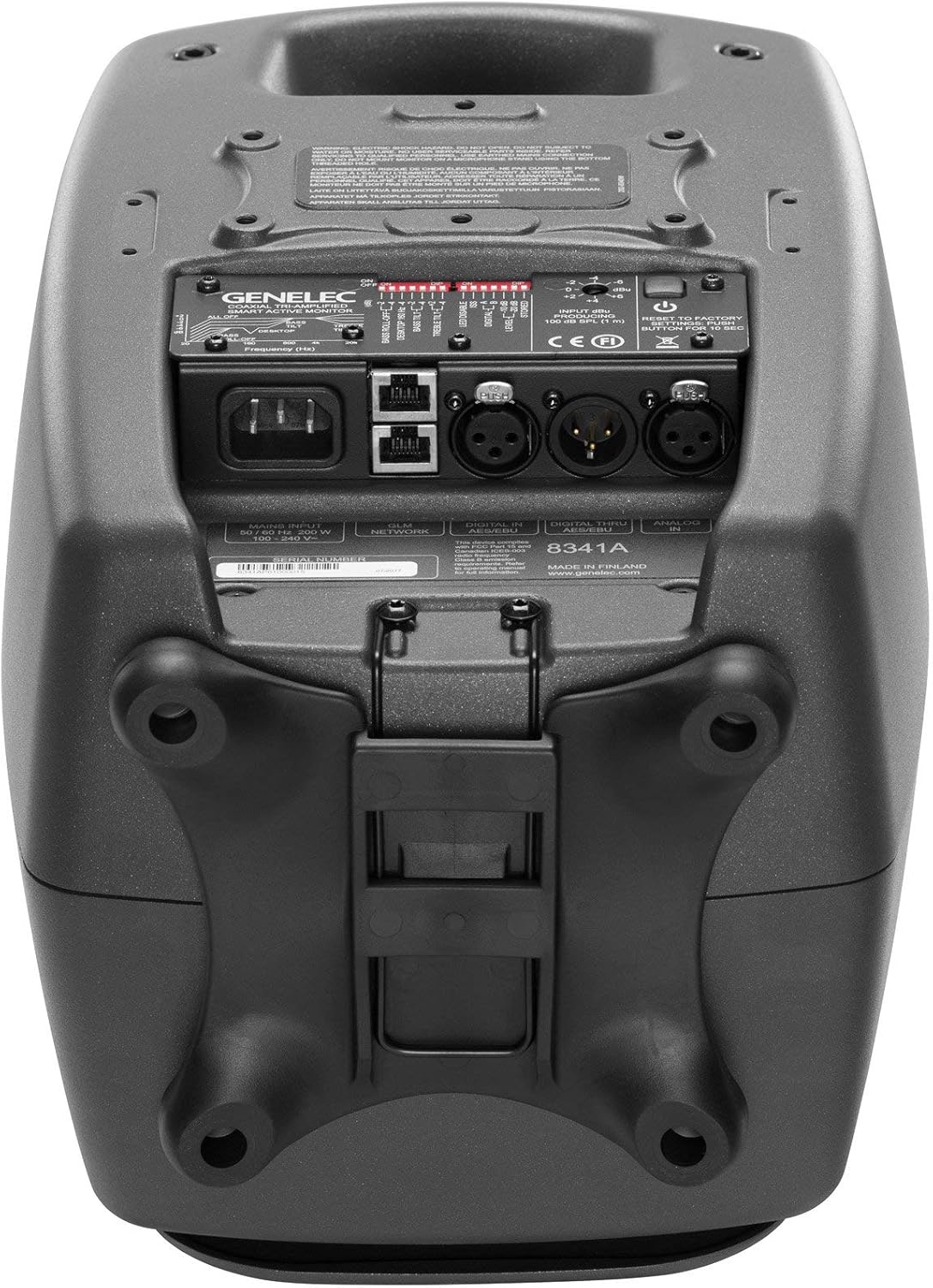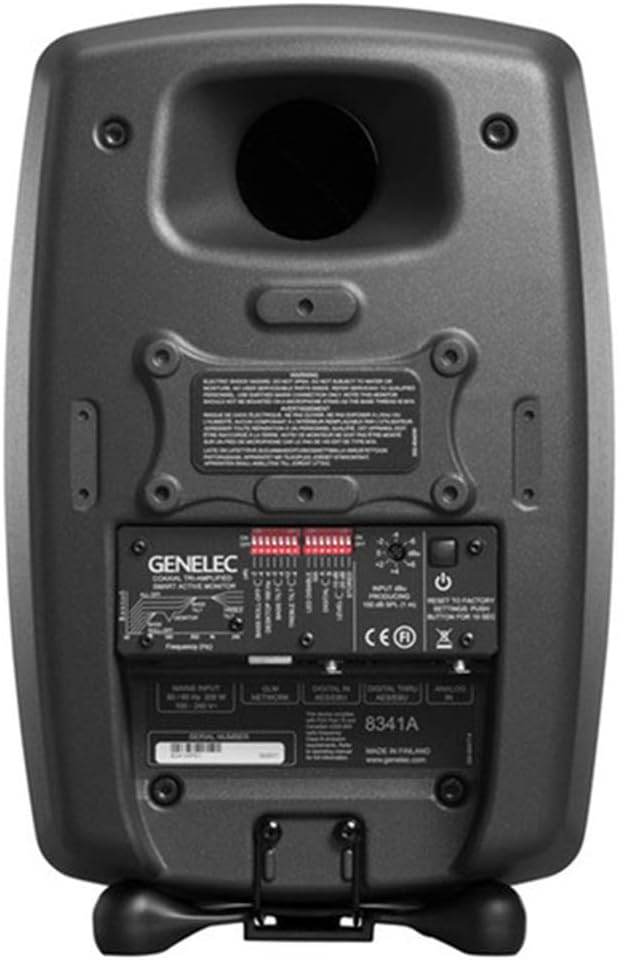 Genelec 8341AP Dark Grey 3-Way Coaxial SAM/DSP Studio Monitor provides outstanding dynamic range and tonal accuracy for professional mixing. Its Smart Active design ensures perfect calibration, offering reliable reference sound in any acoustic setting.