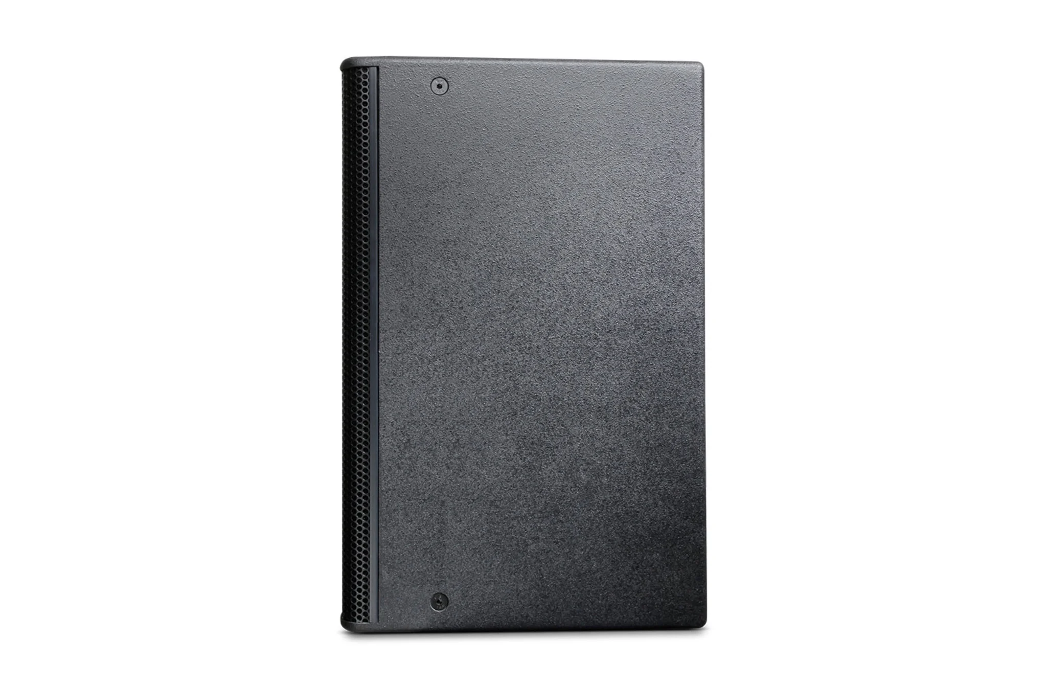 The cabinet is constructed from 15 mm multi-ply hardwood plywood and finished in durable black textured paint. Dual Neutrik NL4 connectors with screw terminals provide reliable signal connections. Multiple M10 suspension points and rear-threaded inserts allow versatile mounting using optional U-brackets, L-brackets, or wall-mount systems.