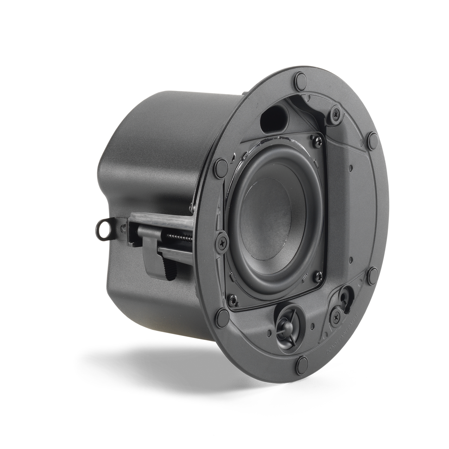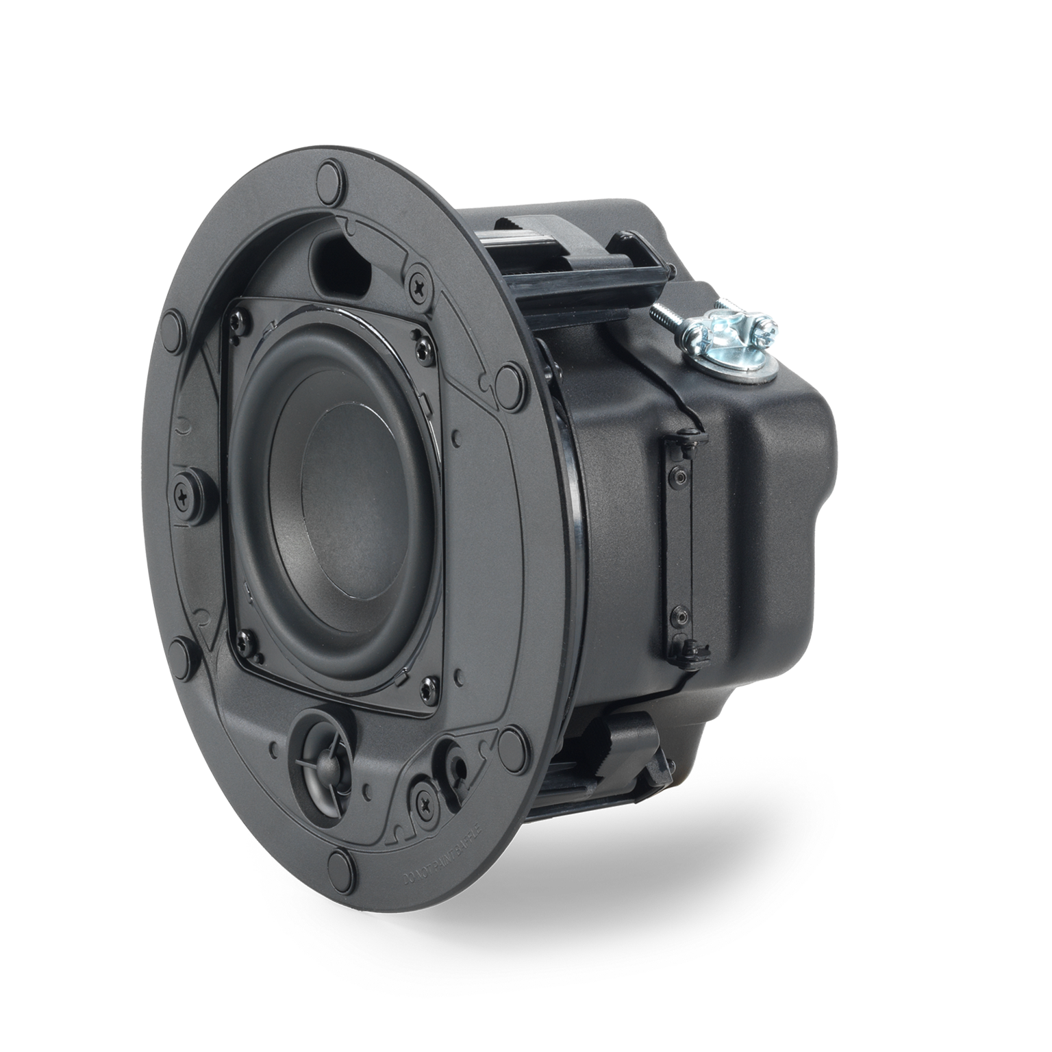 The Control 414C/T Micro is engineered for simple and reliable installation. A terminal cover allows top or side cable entry, and the sturdy captive dogear system accommodates various ceiling thicknesses. It supports both 70V/100V distributed audio systems and 8-ohm low-impedance operation, making it ideal for standard commercial sound applications.