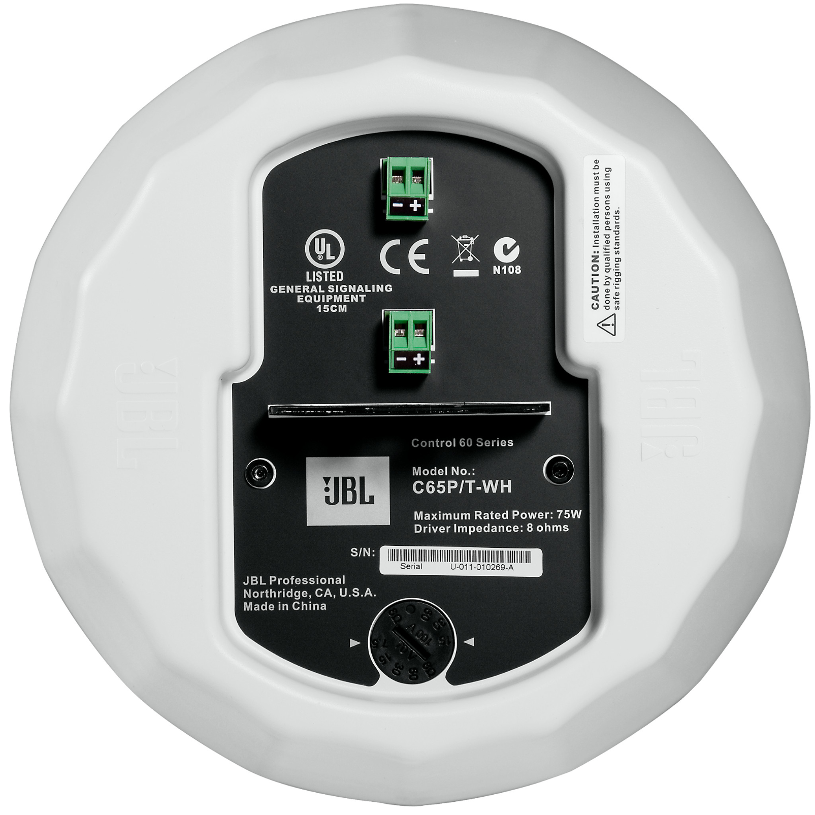 | Transformer Taps | 70V: 60 W, 30 W, 15 W, 7.5 W; 100V: 60 W, 30 W, 15 W |