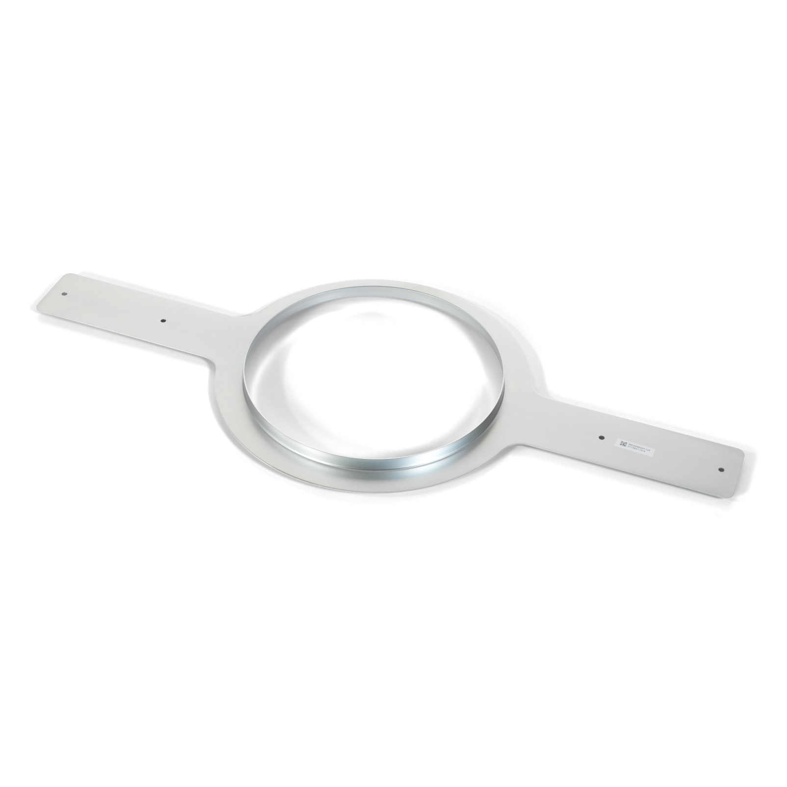 The optional MR PLASTER-RING BRACKET (or Mud Ring) contains a circular offset, forming an edge guide for sheetrock plastering. The bracket has wings that attach to the building structure. Sheetrock is typically either precut or cut with a rotary cutting tool using the outside of the plaster ring circle as a guide.