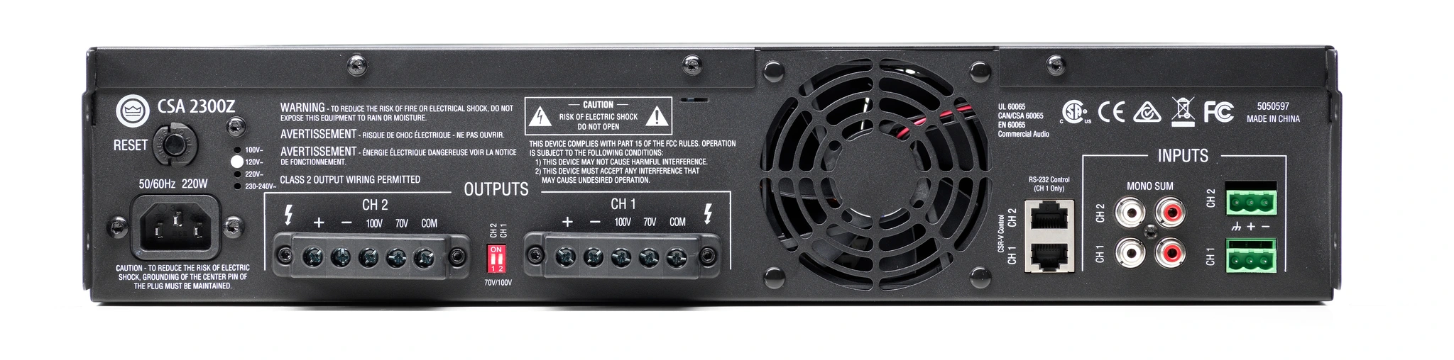 The JBL NCSA2300Z-34-UK is a dual-channel commercial amplifier delivering 2 x 300 W output with flexible installation options and energy-efficient design, origin of country mexico.