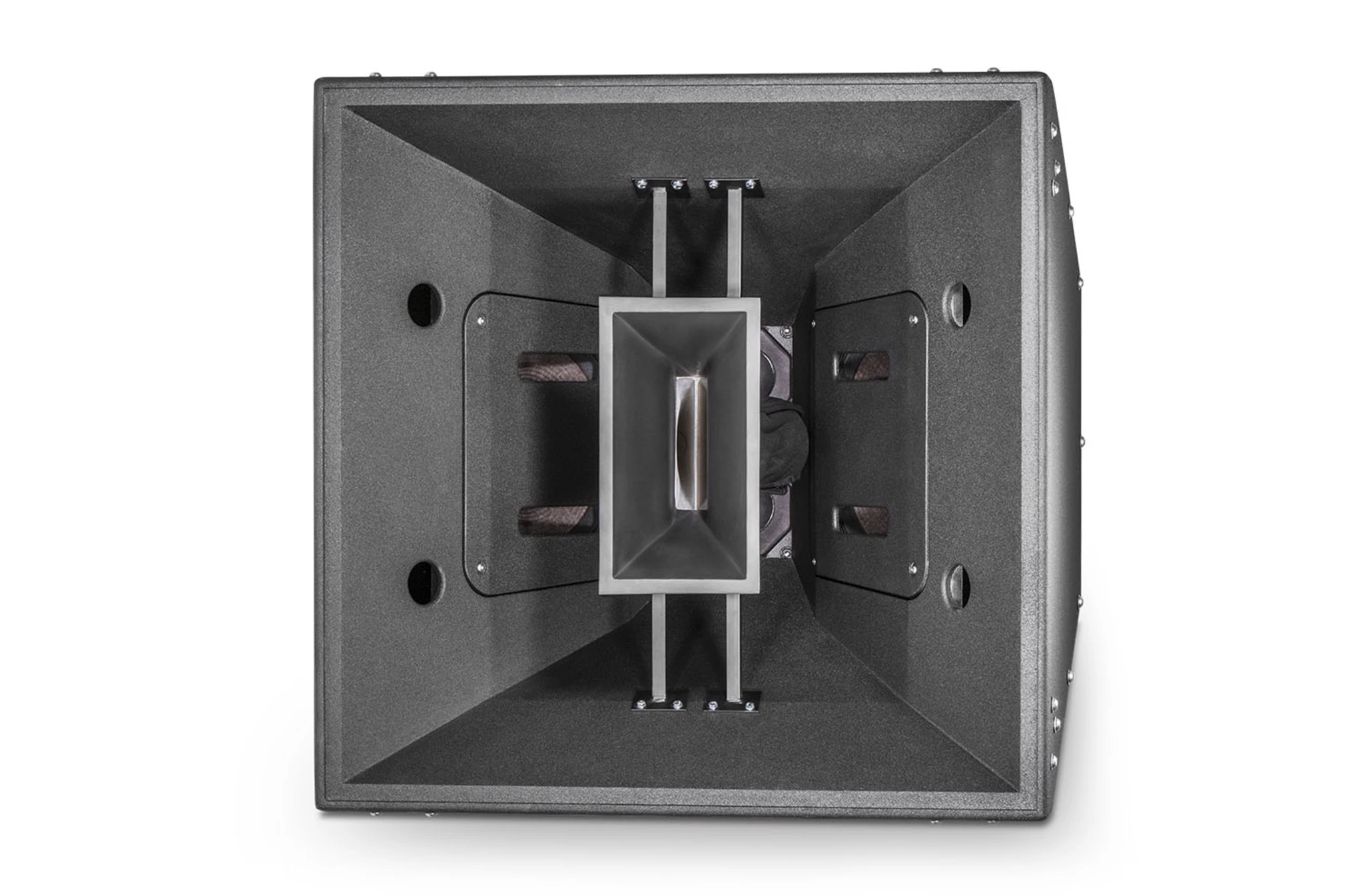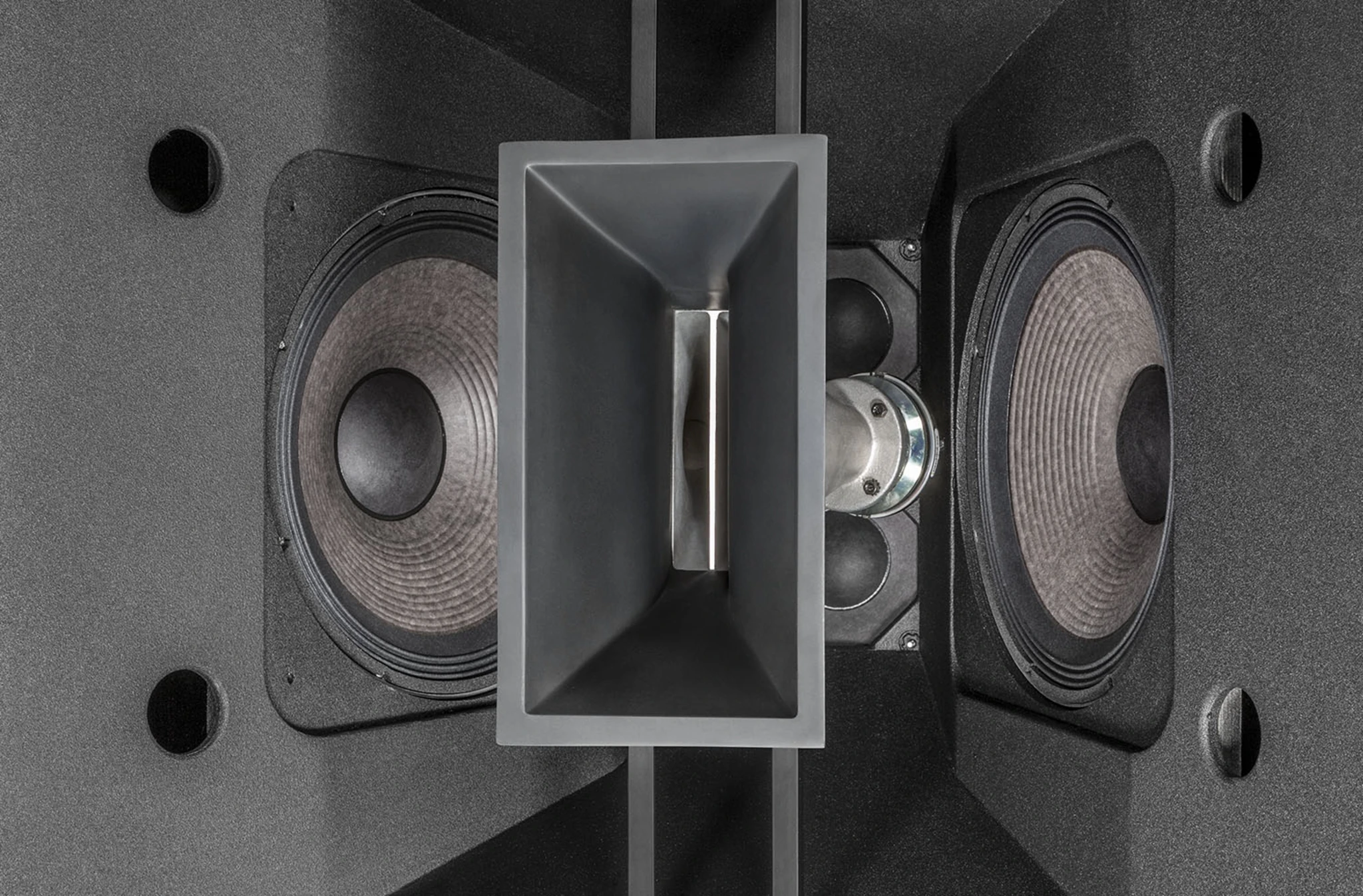 This speaker incorporates dual 15-inch low-frequency Differential Drive® woofers with dual voice coils and magnetic gaps, dual 8-inch CMCD horn-loaded midrange drivers, and dual 2432H 3-inch compression drivers for high-frequency clarity. The IFS™ Interference Free Summation module ensures destructive interference is eliminated and output is increased by 6 dB. Its 60° x 40° symmetrical coverage pattern allows for horizontal or vertical orientation, with pattern control maintained down to 400 Hz. The co-axial mid/high-frequency layout improves arrayability while minimizing enclosure size.