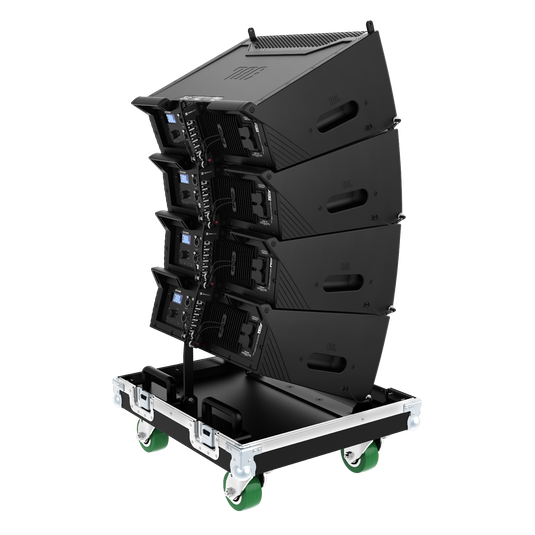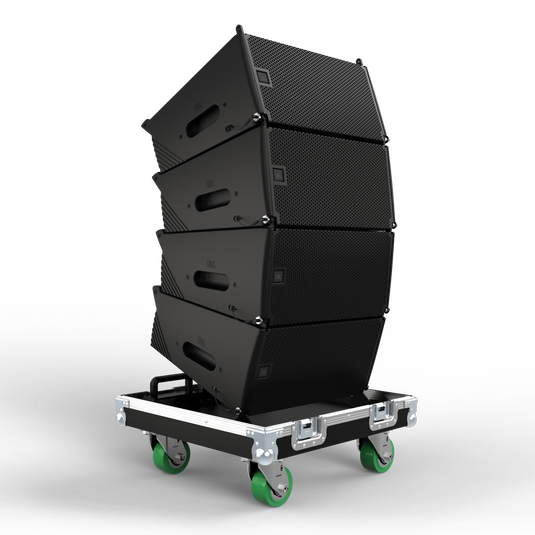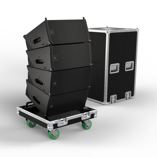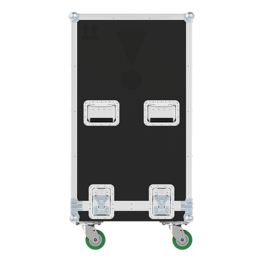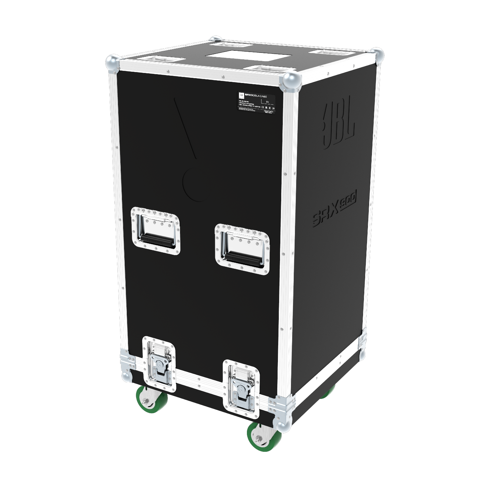 Road case for (4) SRX906LA speakers. Truck-friendly dimensions. Built-in stacking features for easy storage. Impact-resistant DuraFlex finish. Heavy-duty casters.