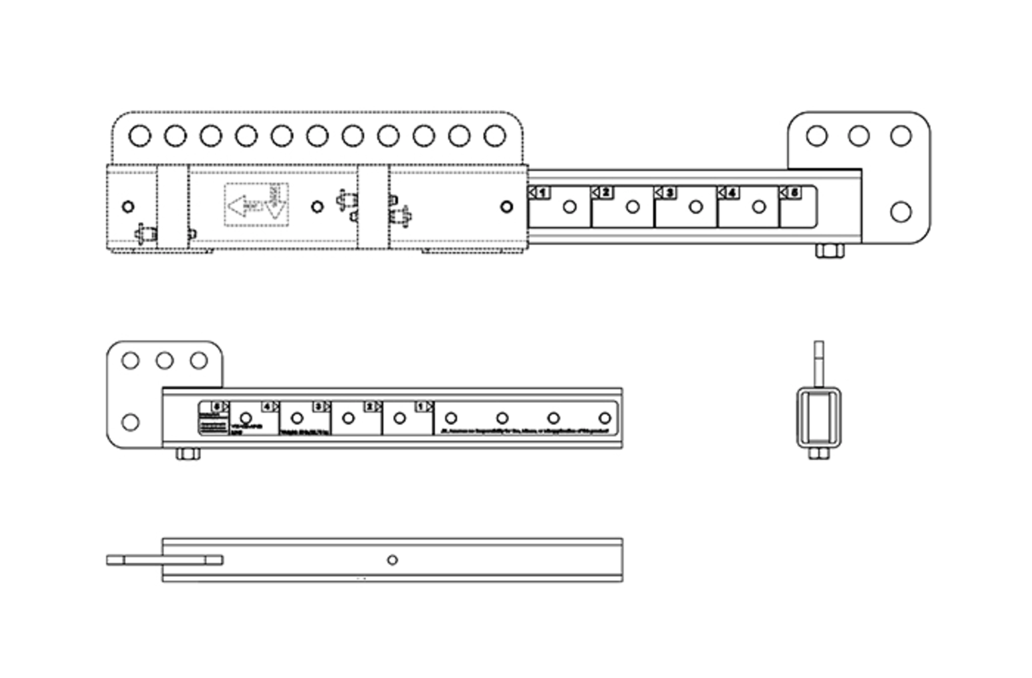 Extension Bar accessory used in conjunction with the VTX-V20-AF array frame for deploying VTX V20 systems in either compression or tension mode. Five extension bar attachment options provide variable pick point separation (2-point suspension) and added flexibility for single point suspension.