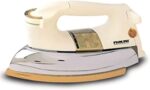 Nikai Dry Iron NDI724N with 750W power features a golden Teflon-coated sole plate, overheating protection, and cordless convenience. Ideal for efficient and safe ironing with a sleek, multicolor design.