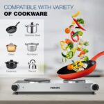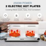 Its sleek stainless-steel body ensures long-term durability while adding a modern touch to your cooking space. Each hot plate is controlled with an adjustable thermostat, giving you precise heat settings for everything from boiling to simmering. For added safety, it includes overheat protection and a power indicator light to signal operation.