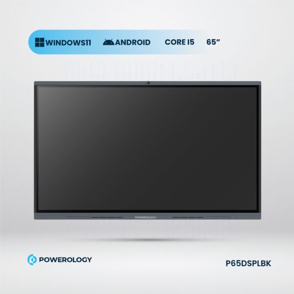 The Powerology 65″ Dual Windows & Android Interactive Smartboard – Black is designed to elevate communication and collaboration in classrooms, offices, and meeting rooms. Featuring dual operating system support — Android 11 and Windows 11 compatibility — this smartboard offers the flexibility to run a wide range of applications for both educational and corporate use. The 65-inch D-LED Ultra HD display delivers exceptional clarity with a resolution of 3840 × 2160 and a wide 178° viewing angle, making it easy to view content from any position.