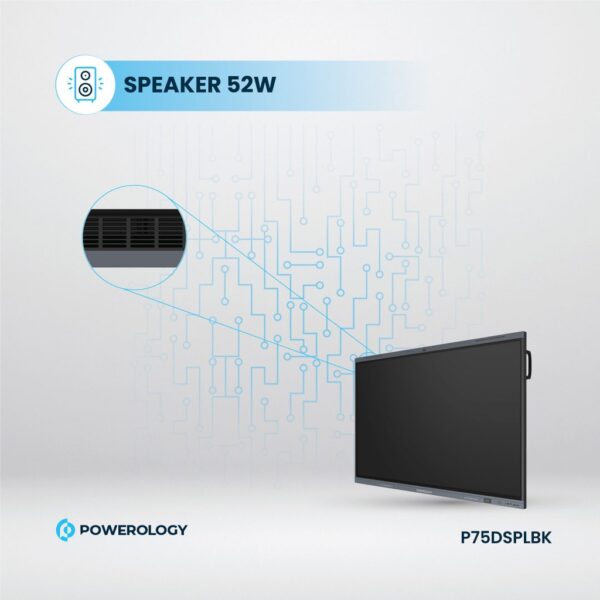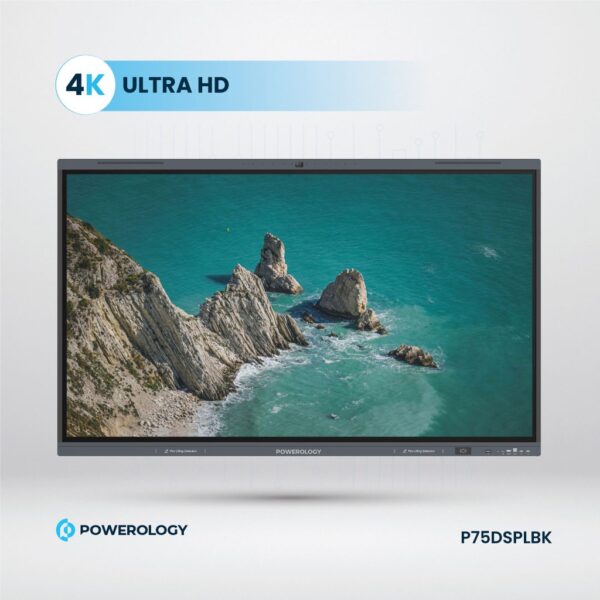 The Powerology 75″ Dual Windows & Android Interactive Smartboard – Black transforms collaboration with its dual operating systems and powerful hardware, making it an ideal tool for both educational and professional environments. Featuring a stunning 75-inch 4K Ultra HD D-LED display with a resolution of 3840 × 2160, the smartboard delivers vivid and sharp visuals. It runs on Android 13 and Windows 11, offering flexibility for a wide range of applications, from business presentations to classroom lessons.