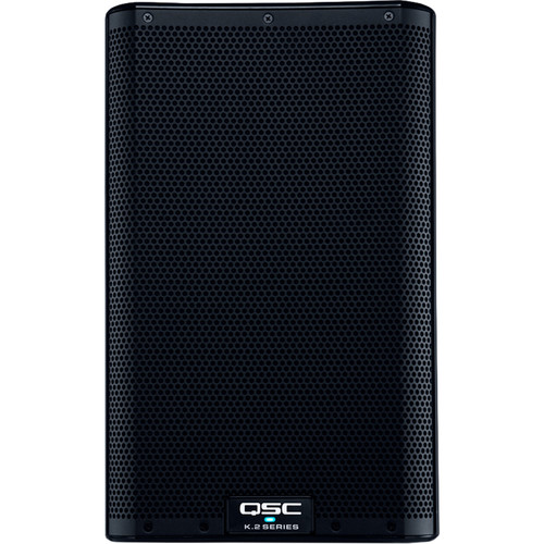 QSC K10.2 2000W 10-Inch Portable Active Loudspeaker with DSP features a 10-inch woofer and 1.4-inch compression driver with a 90-degree conical waveguide. Dual-angle pole socket and user-adjustable DSP make it a flexible solution for live sound and stage monitoring.