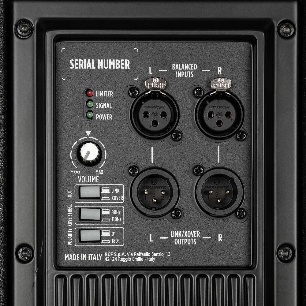 RCF SUB 708-AS MK3 is a powerful 18-inch active subwoofer delivering 1400W Class-D amplification, up to 133 dB SPL, 35120 Hz response, and Bass Motion Control for deep, precise, and high-impact low-frequency performance.