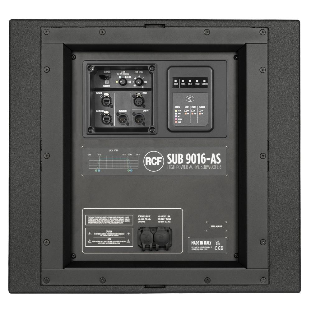 Advanced technologies such as BMC (Bass Motion Control), ACE crossover presets, and factory-optimized system tuning ensure seamless integration with RCF full-range speakers. The SUB 9016-AS is built to deliver professional performance, portability, and intelligent system control in a compact yet powerful subwoofer design.