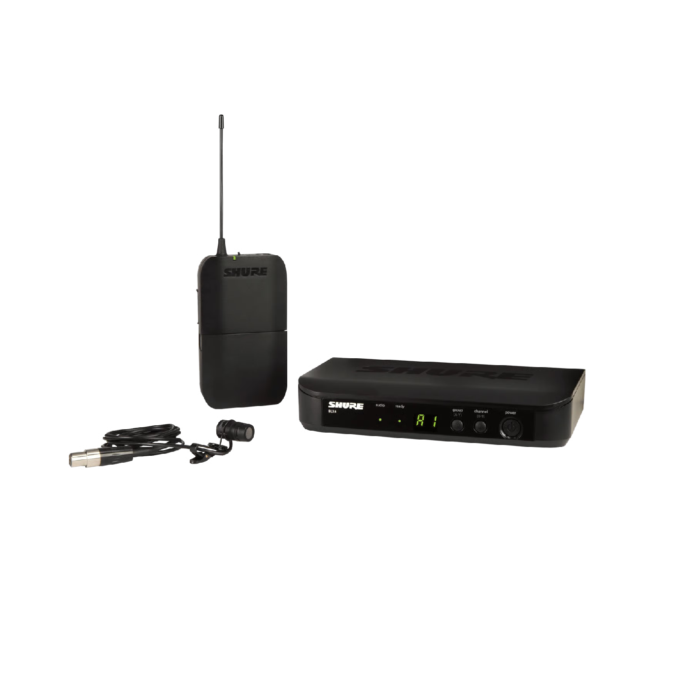 - Single-channel wireless system with BLX4UK receiver and WL185M lavalier microphone