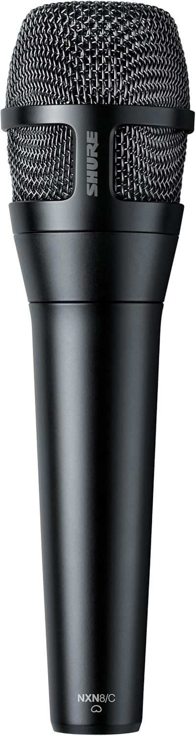The Shure NXN8/C Nexadyne is a professional XLR cardioid instrument microphone in black, designed for stage use. It delivers clear, detailed, and focused audio for instruments, making it ideal for live performances, rehearsals, and studio applications.