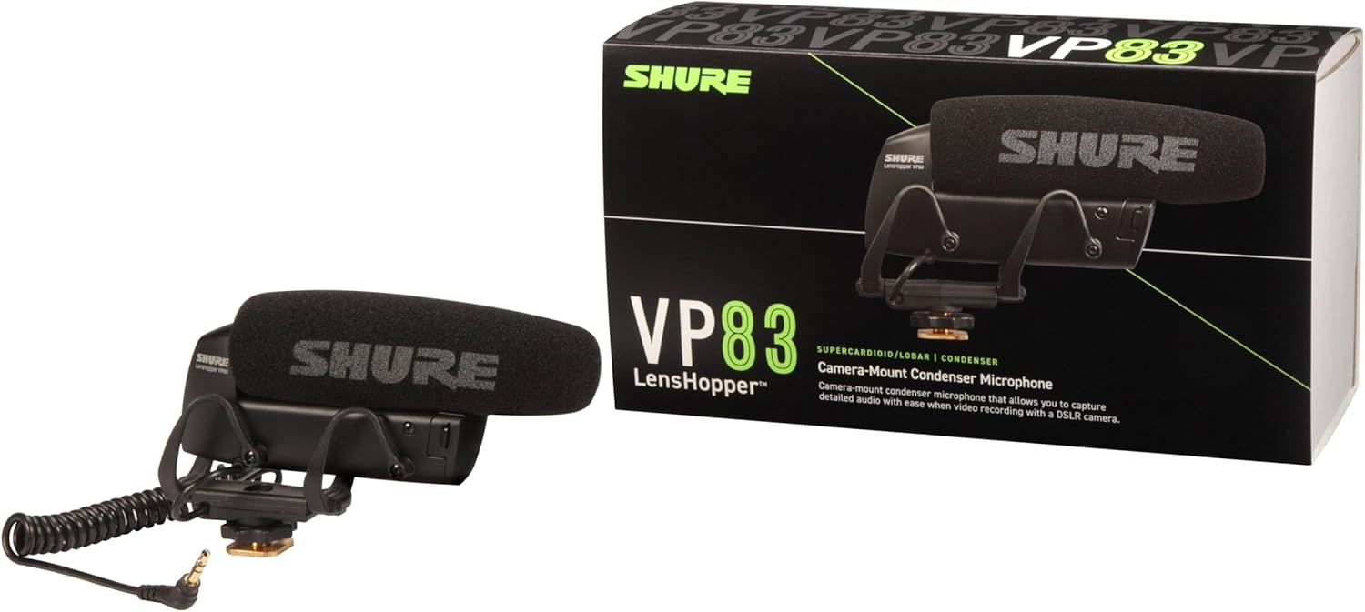 The Shure VP83 LensHopper is a compact, lightweight shotgun microphone designed specifically for DSLR cameras and HD camcorders. Engineered to capture detailed, high-definition audio with a full low-end response, the VP83 is an ideal solution for content creators, filmmakers, streamers, and mobile journalists who require professional sound quality directly from their camera setup.