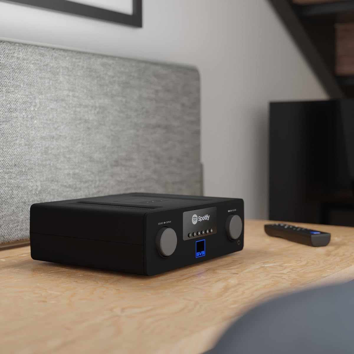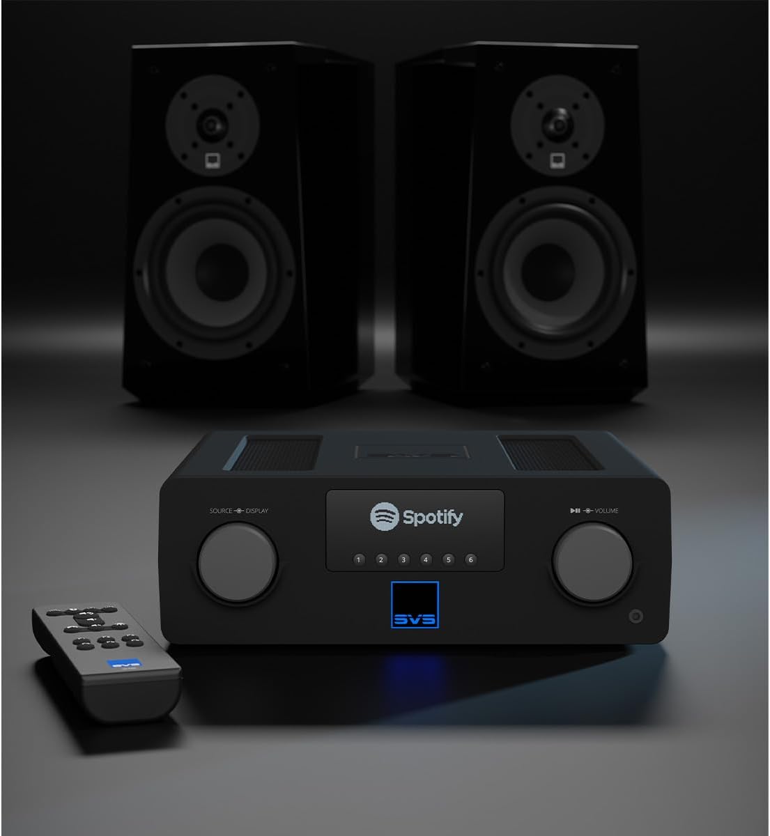 SVS Prime Wireless Pro SoundBase is a smart wireless integrated stereo amplifier designed for modern audiophiles who demand pristine sound, effortless power, and versatile connectivity. This compact high-performance amplifier delivers 300 watts of total output (150 watts per channel) with stunning dynamics, deep bass, and crystal-clear clarity, providing an uncompromised listening experience when paired with your speakers. Its intuitive design and advanced streaming options make it ideal for home stereo or immersive home theater setups.