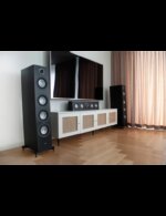 The TAGA Harmony PLATINUM F-120 v.4 Floorstanding Speakers in Black are premium 3-way loudspeakers engineered for high-fidelity stereo and home theater systems. Built around the 3rd-generation TLIE-II (Taga Low Interference Enclosure), the cabinets feature reinforced MDF walls (21mm front baffle, 15mm sides) and internal bracing to eliminate unwanted resonances and vibrations. The enclosure is tilted backward to time-align all drivers, improving phase accuracy and soundstage depth. Each speaker houses dual 6.5-inch woofers for deep, controlled bass, a dedicated 6.5-inch midrange driver for rich vocals and instrument detail, and a 1-inch silk dome tweeter for crisp, extended highs. Magnetically mounted grills offer a sleek look and reduce distortion when removed. Finished in durable black vinyl with die-cast aluminum feet and spikes, the F-120 v.4 delivers immersive, room-filling sound with elegant aesthetics. Ideal for audiophiles, music lovers, and cinema enthusiasts seeking powerful, refined performance.