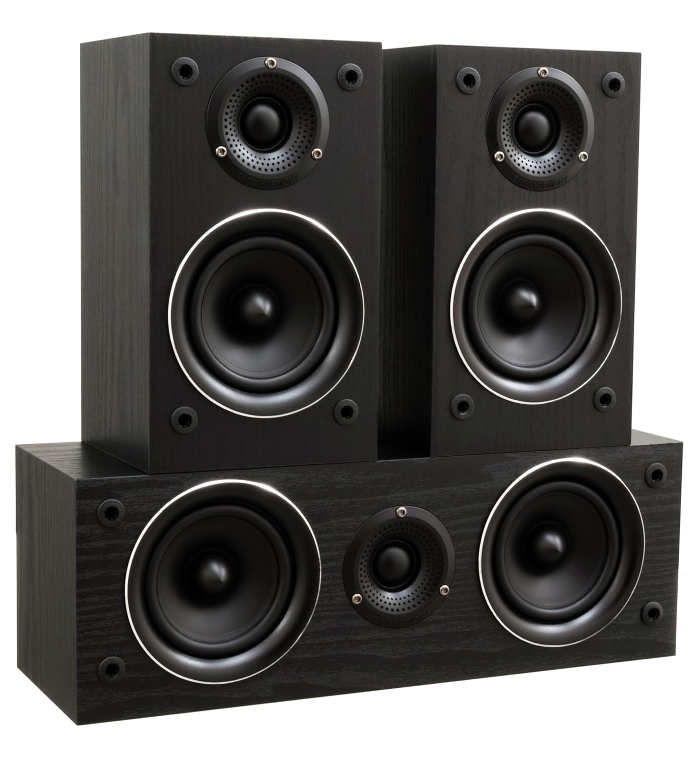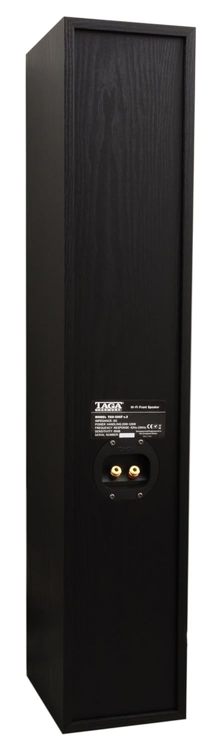 The TAGA Harmony TAV-506 v.2 5.0 Speaker Set in Matte Black is a fully redesigned home theater system engineered to deliver dynamic, high-resolution sound for movies, music, and gaming. This second-generation upgrade includes two TAV-506F v.2 3-way floorstanding speakers, one TAV-506C v.2 2-way center speaker, and two TAV-506S v.2 2-way surround bookshelf speakers. All components feature the TLIE (Taga Low Interference Enclosure) cabinet design with reinforced MDF panels, internal bracing, and acoustic damping to eliminate unwanted resonances and standing waves. The floorstanders use dual 5.25″ paper cone woofers, a 5.25″ glass fiber midrange driver, and a 1″ silk dome tweeter with TWG waveguide for deep bass, rich vocals, and crisp highs. The center speaker ensures lifelike dialogue clarity, while the surrounds deliver ambient effects and spatial realism. With acoustically matched drivers, wide dispersion, and high power handling, the TAV-506 v.2 set transforms any room into a cinematic soundstage—ideal for audiophiles, movie lovers, and immersive entertainment setups.