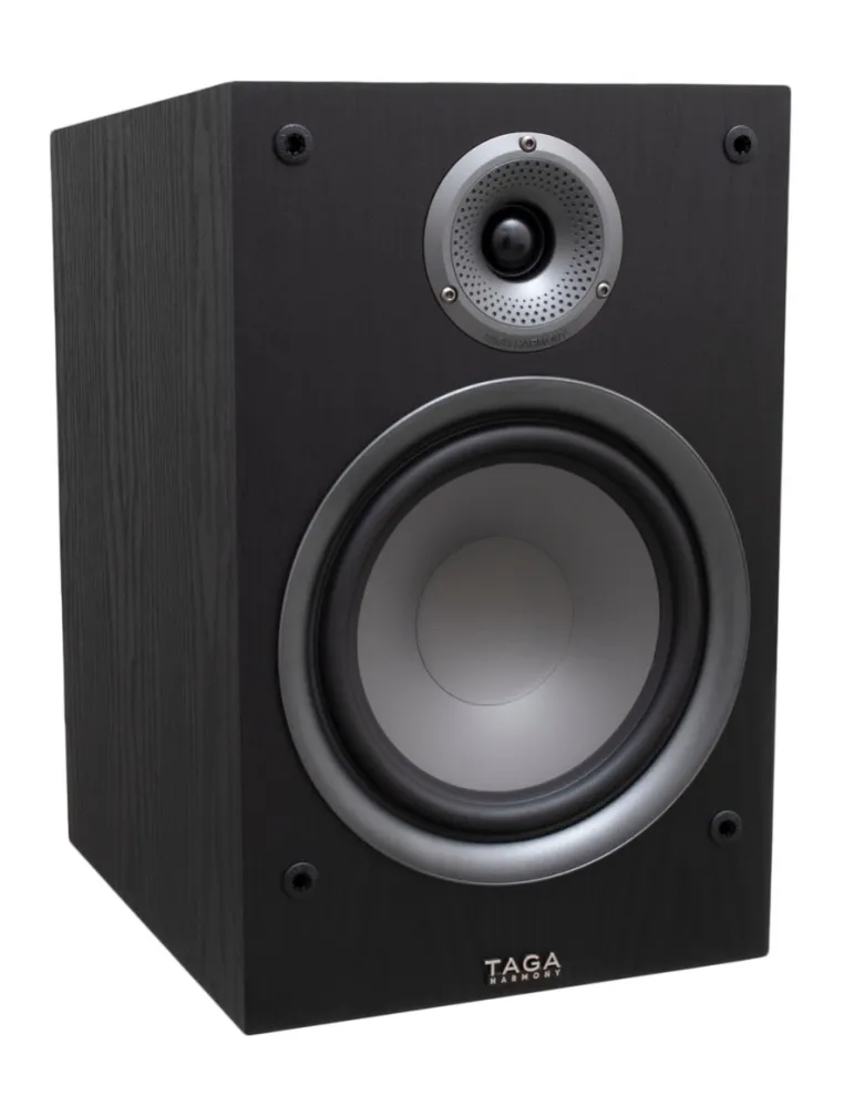 The TAGA Harmony TAV-807B Bookshelf Speakers in Matte Black are flagship-grade 2-way loudspeakers designed to deliver powerful, full-range sound in compact stereo and home theater setups. Part of the new-generation Audio-Video series, the TAV-807B features a re-engineered TLIE-I (Taga Low Interference Enclosure) cabinet with a thicker 21mm MDF front baffle, internal bracing, and high-density damping material to eliminate unwanted resonances and standing waves. Each speaker houses a massive 8″ polypropylene bass-midrange driver for deep, extended bass and rich midrange, supported by a rear slotted bassreflex port for enhanced low-frequency dispersion. A 1″ silk dome tweeter with oversized magnet, ferrofluid cooling, and TWG-I waveguide delivers crisp, detailed highs with wide dispersion. Despite its compact footprint, the TAV-807B offers dynamics and soundstage typically found in larger floorstanding models—ideal for audiophiles, music lovers, and immersive desktop or media room installations.