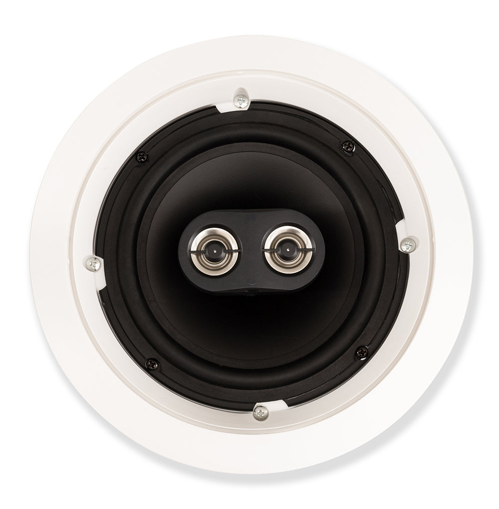 The TAGA Harmony TCW-300R SM In-Ceiling Speaker in White is a compact 2-way stereo/mono custom installation speaker designed to deliver clear, natural, and immersive sound from a single ceiling-mounted unit. Ideal for rooms where space or aesthetics limit speaker placement, the TCW-300R SM features a 165mm (6.5″) polypropylene cone bass-midrange driver for punchy bass and smooth mids, paired with dual 13mm (0.5″) Mylar® dome tweeters mounted on a TWG (Taga WaveGuide) faceplate for crisp highs and wide stereo dispersion. The speaker can operate in stereo or mono mode, making it perfect for kitchens, bathrooms, hallways, and commercial zones. A ±3dB treble switch (Environmental Equalizer) allows fine-tuning of high-frequency output based on room acoustics. The ultra-rigid TIMPC (TAGA Injection-Molded Polymer Chassis) minimizes distortion and resonance, while the TEI (TAGA Easy Install) mounting system ensures fast, secure installation. Magnetically mounted TSLB (TAGA Super Low-profile Bezel) grills blend seamlessly into any décor and can be painted to match ceiling color. With 75W RMS power handling, 90dB sensitivity, and a wide 43Hz–20kHz frequency response, the TCW-300R SM delivers full-range stereo sound with minimal visual footprint and maximum performance.