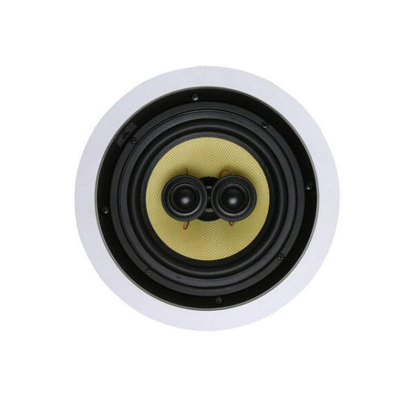 The TAGA Harmony TCW-600R v.2 In-Ceiling Speaker in White is a compact 2-way stereo/mono speaker designed to deliver clear, natural, and immersive sound from a single ceiling-mounted unit. Ideal for rooms where space or aesthetics limit speaker placement, the TCW-600R v.2 features a 165mm (6.5″) Kevlar® cone bass-midrange driver for tight, punchy bass and smooth mids, paired with dual 19mm (0.75″) silk dome tweeters mounted on a TWG (Taga WaveGuide) faceplate for crisp highs and wide stereo dispersion. The speaker can operate in stereo or mono mode, making it perfect for kitchens, bathrooms, hallways, and commercial zones. A ±3dB treble switch (Environmental Equalizer) allows fine-tuning of high-frequency output based on room acoustics. The ultra-rigid TIMPC (TAGA Injection-Molded Polymer Chassis) minimizes distortion and resonance, while the TEI (TAGA Easy Install) mounting system ensures fast, secure installation. With 75W RMS power handling, 89dB sensitivity, and a wide 40Hz–20kHz frequency response, the TCW-600R v.2 delivers full-range stereo sound with minimal visual footprint and maximum performance.