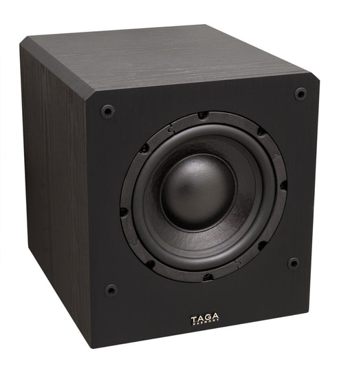 The TAGA Harmony TSW-80 Subwoofer in Wenge or Oak MDF finish is a compact 8″ active subwoofer engineered to deliver deep, clean bass with precision and control for home theater and stereo systems. This fourth-generation model shares its amplifier and driver architecture with the higher TSW-90 v.4, featuring a high-current 95W RMS Class AB amplifier (260W peak) built with heavy-duty power boards and premium-grade components. The 203mm paper cone woofer is housed in a TLIE (Taga Low Interference Enclosure) cabinet made from thick MDF panels, internally braced and acoustically damped to eliminate unwanted resonances and standing waves. A rear slotted bassreflex port enhances airflow and extends low-frequency output with minimal turbulence. The TSW-80 includes an integrated clipping limiter, auto on/off function, and IEC C14 power inlet for stable operation and audiophile cable compatibility. With its compact footprint and elegant wood-textured finish, the TSW-80 delivers room-filling bass with clarity and punch—ideal for audiophiles, movie lovers, and space-conscious setups.