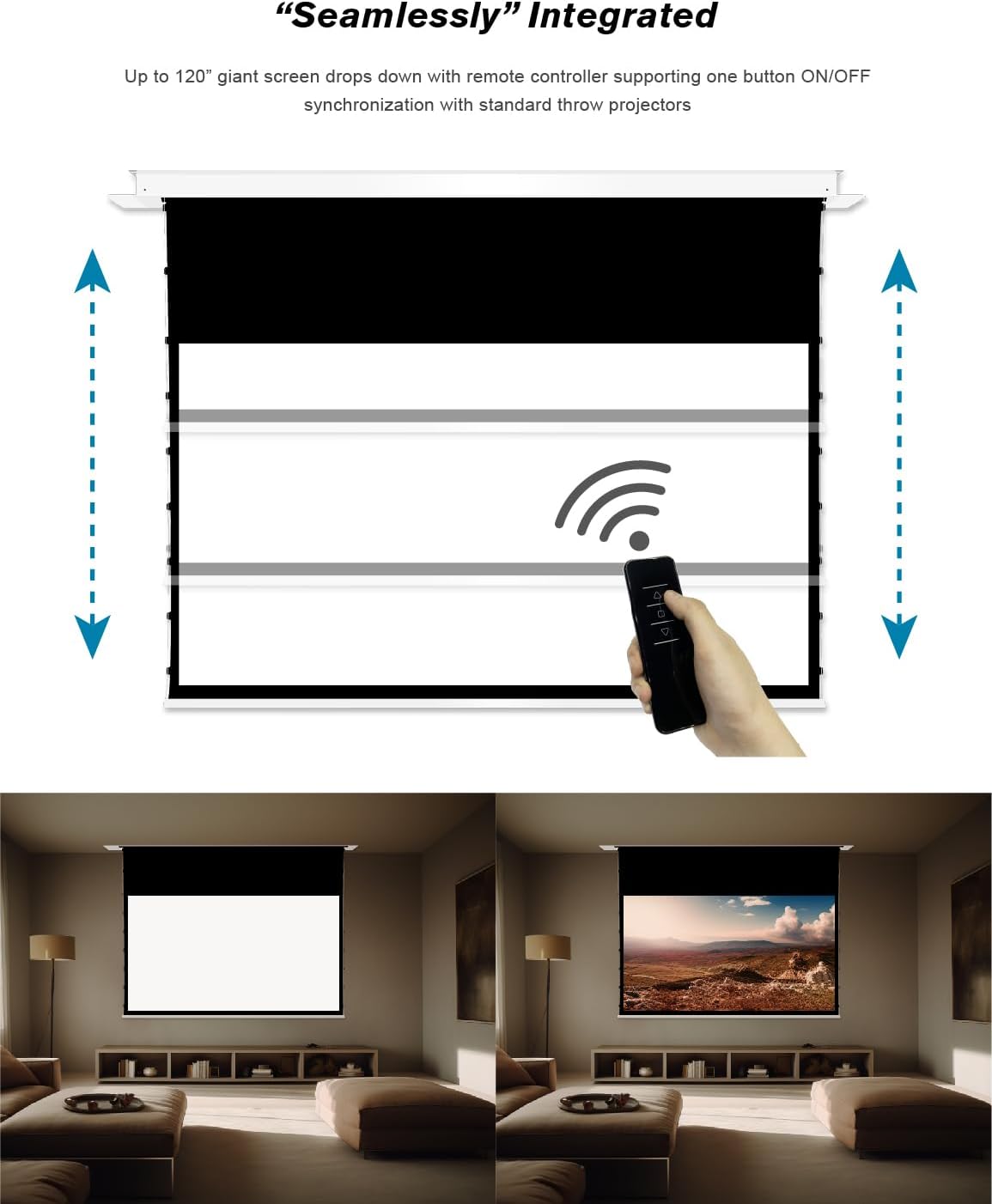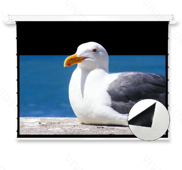 VIVIDSTORM VPCLW120H 120″ PHANTOM Recessed In-Ceiling Motorized Tension White Cinema Projector Screen provides bright, sharp images even in well-lit environments. Its motorized, tensioned design with recessed installation creates a clean, space-saving setup for home theaters or offices. The white cinema surface improves contrast and color fidelity, delivering vivid and lifelike visuals. Ideal for long-throw projectors, it ensures a fully immersive viewing experience.