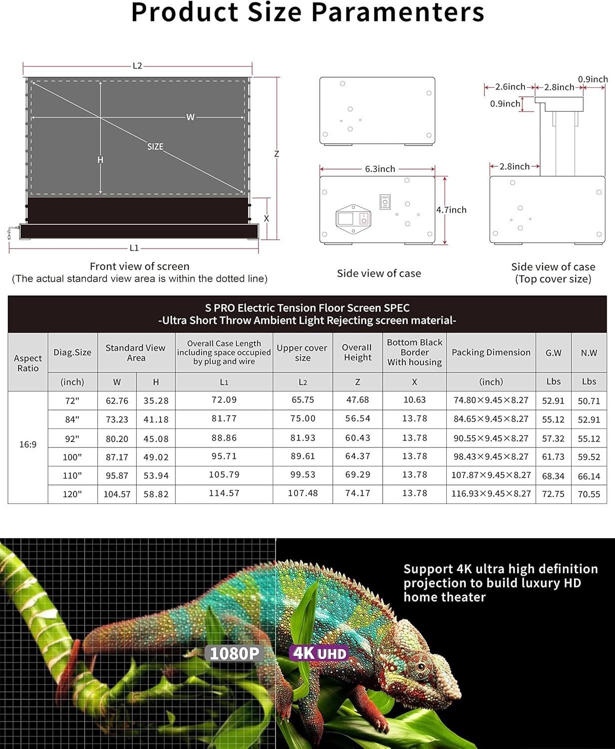 VIVIDSTORM VSDSTUST120H 120″ S PRO Motorised Floor Rising UST Laser Projector Screen offers bright, clear images with minimal glare in any lighting. Its motorized floor-rising mechanism provides smooth deployment and a low-profile setup. The ALR surface improves contrast and color fidelity for vibrant, detailed visuals. Perfect for home or office use, it delivers an immersive and professional viewing experience.