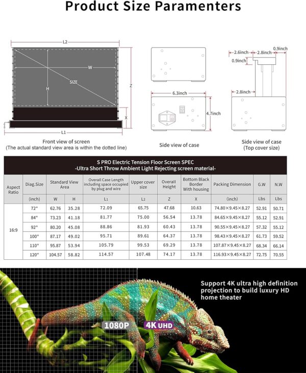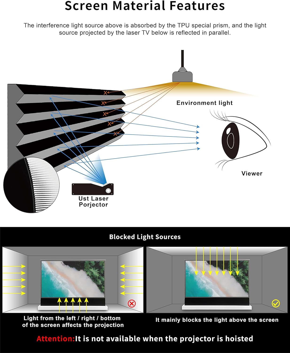 VIVIDSTORM VWSDSTUST120H 120″ ALR S PRO Motorised Floor Rising UST Laser Projector Screen delivers bright, glare-free images for rooms with ambient light. Its motorized floor-rising design provides convenient deployment and a space-saving setup. The ALR surface boosts contrast and color accuracy, producing vibrant and detailed visuals. Ideal for home theaters or office presentations, it ensures an immersive viewing experience every time.